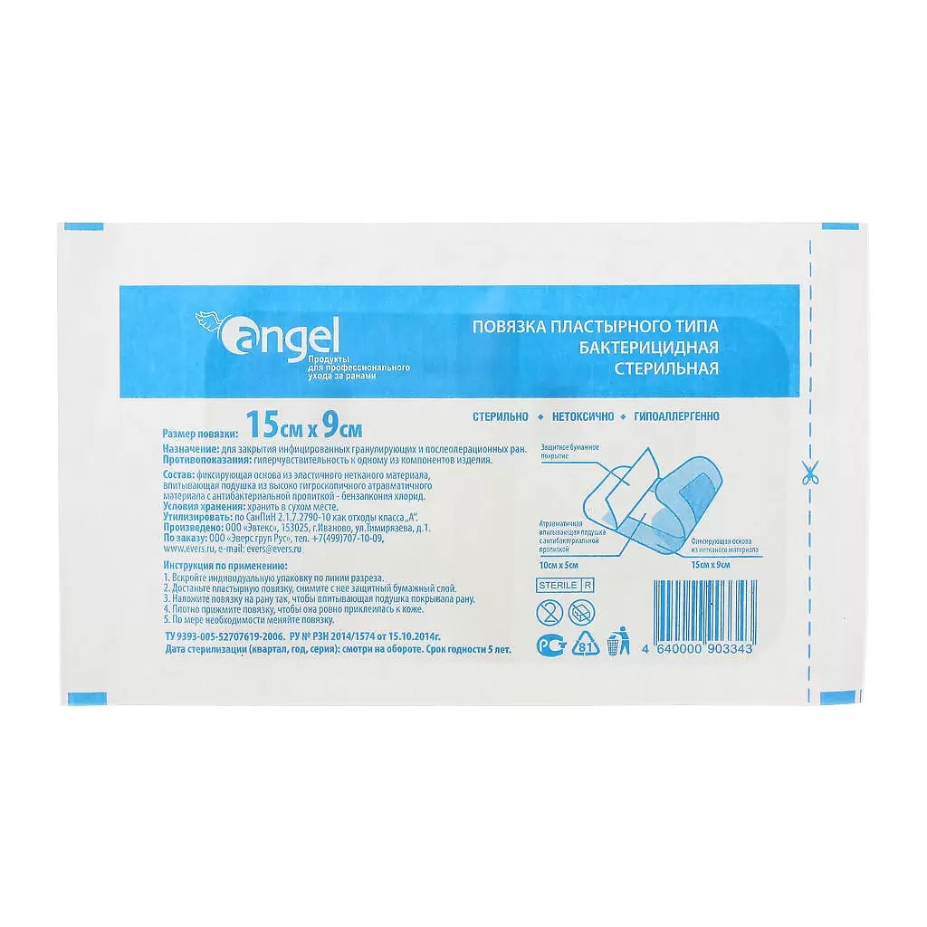 Применяемые при изготовлении бактерицидной повязки материалы обеспечивают защиту раны в течение 24 часов, что соответствует современным методикам ухода за ранами, и обеспечивает комфорт пациента. Повязки стерилизуются радиационным способом, выпускаются в индивидуальной упаковке.