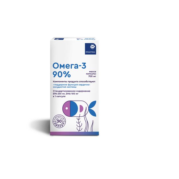 Биологически активная добавка Омега-3 90 % содержит стандартизованное количество эйкозапентаеновой (EPA 165 мг) и докозагексаеновой кислот (DHA 110 мг) в 1 капсуле.