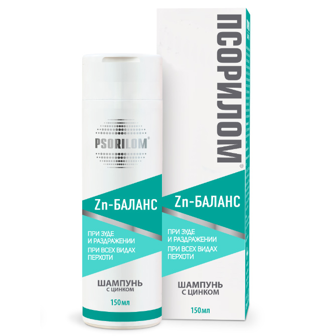 Специализированный шампунь Псорилом® Цинк – баланс – оказывает успокаивающее и противозудное действие на раздраженную и склонную к зуду кожу головы, благодаря свойствам входящих в состав компонентов.