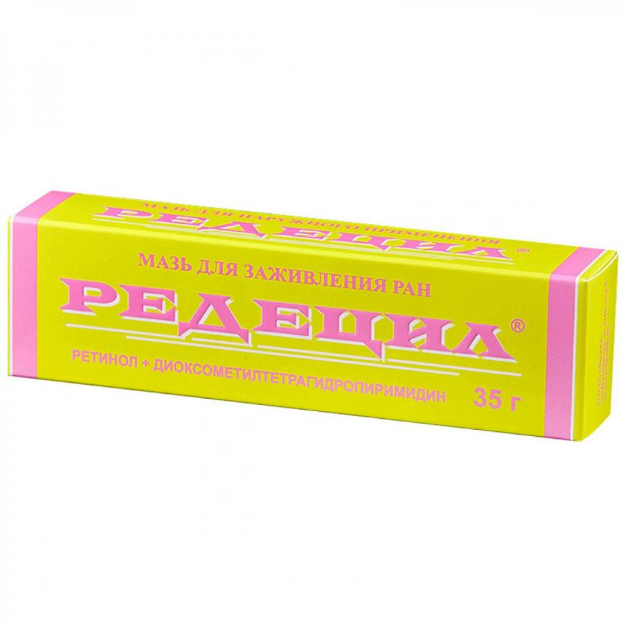 Действующие вещества: ретинола пальмитат (ретинол) (в пересчете на 100%) - 0,5 г, метилурацил (диоксометилтетрагидропиримидин) - 3 г.