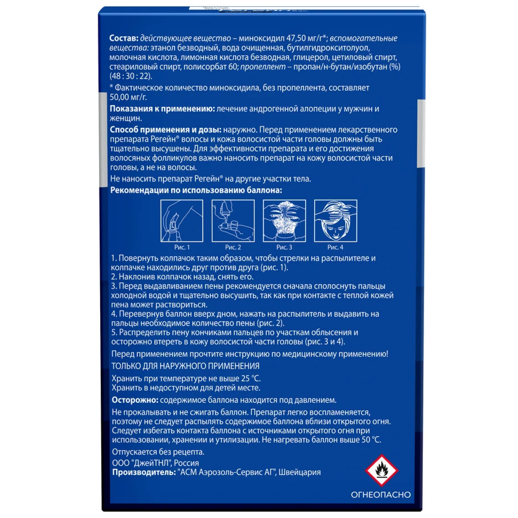 * Фактическое количество миноксидила, без пропеллента, составляет 50,00 мг/г;