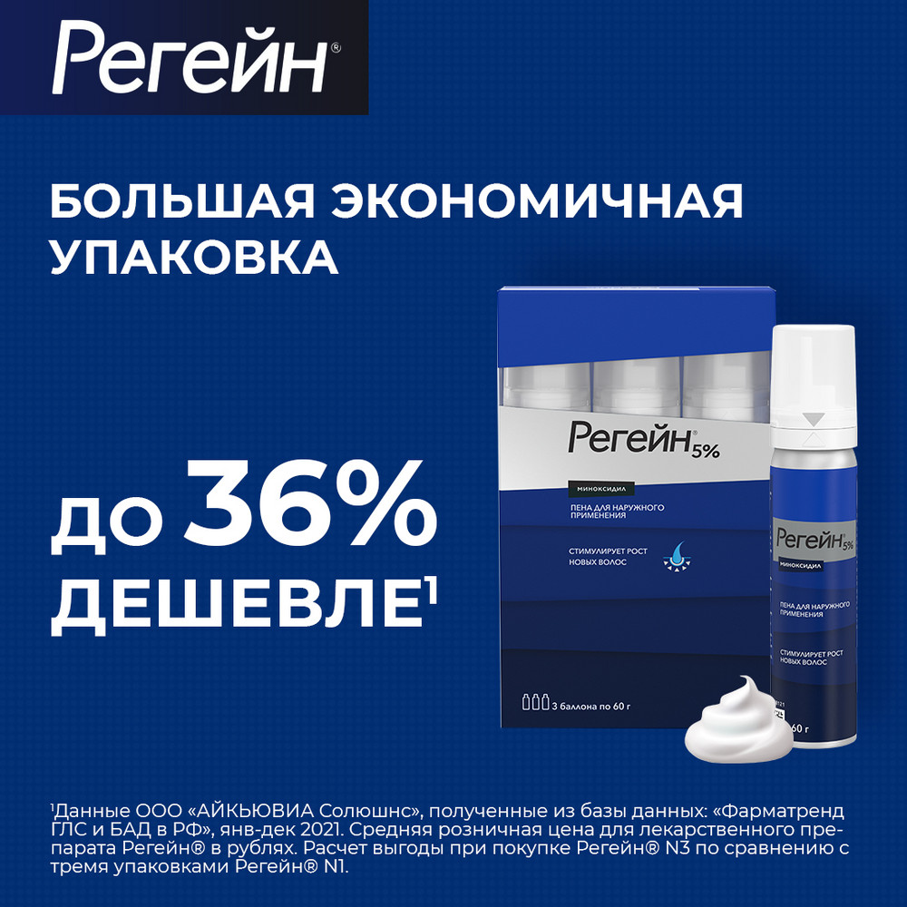 Если после применения лекарственного препарата Регейн® у мужчин в течение 16 недель и у женщин в течение 24 недель усиление роста волос не отмечается, то применение препарата следует прекратить.