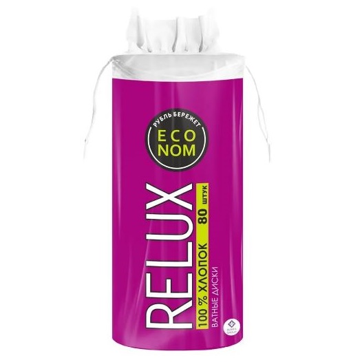 Ватные диски Relux изготовлены из 100% хлопка. Благодаря нескольким циклам бесхлорной очистки хлопковое полотно для дисков получается белоснежным, однородным, без скопления узелков и посторонних примесей — все это позволяет при использовании дисков наслаждаться мягкостью натурального хлопка, без хлопковой пыли и ворсинок. Диски обладают оптимальной впитывающей способностью.