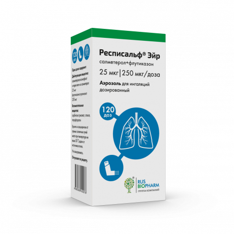 Препарат Респисальф® Эйр предназначен для регулярного лечения бронхиальной астмы, если показано комбинированное лечение бронхорасширяющим препаратом (бета2-адреномиметиком) длительного действия и ингаляционным гормональным препаратом (глюкокортикостероидом):