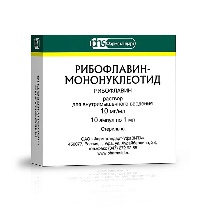 Действующее вещество: рибофлавина (в форме мононуклеотида) 10 мг,
