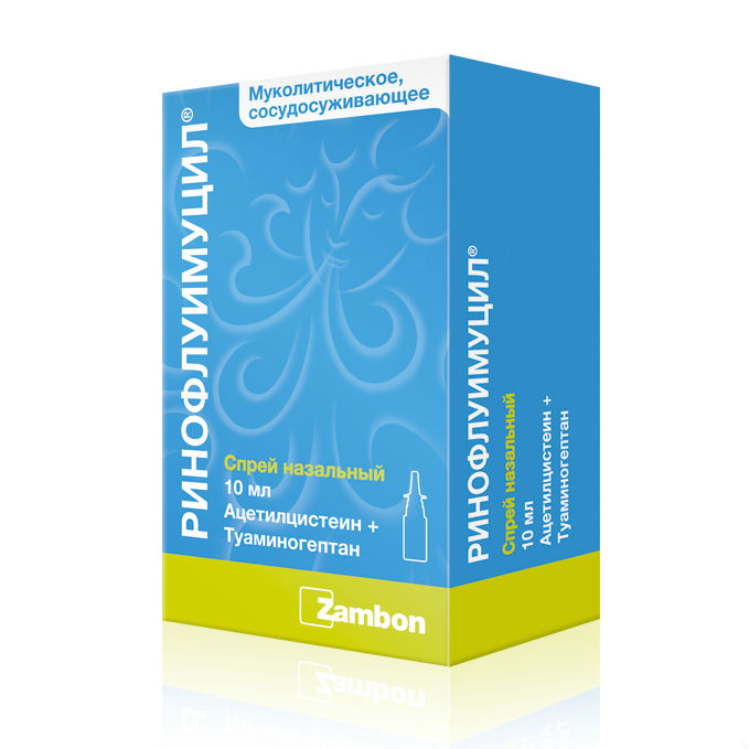 Среднее значение Сmax туаминогептана после 2 нажатий по 50 мкл Ринофлуимуцила® составляло 0,95 нг/мл, среднее значение Тmax составляло 2 ч.