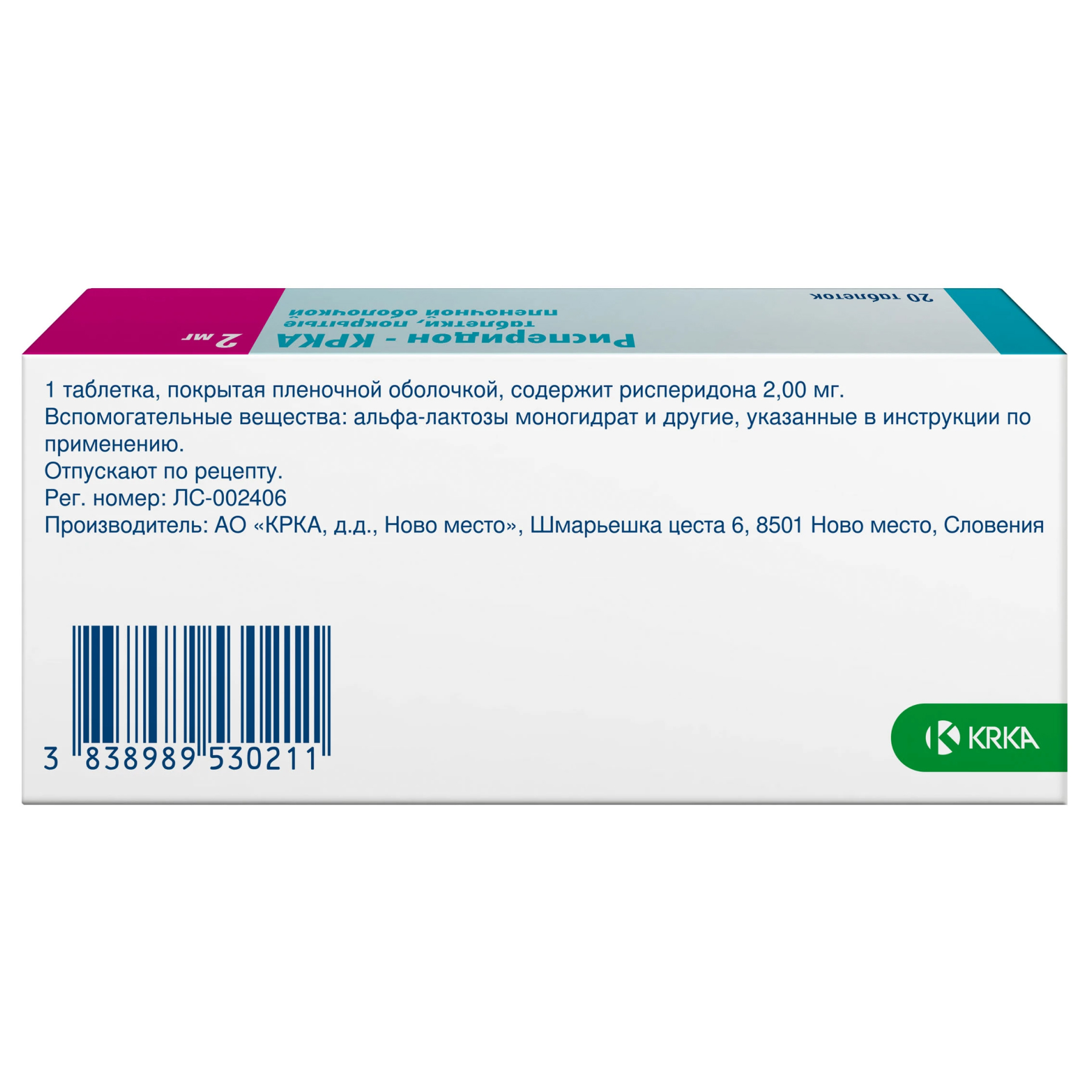 Рекомендуемая начальная доза препарата Рисперидон - КРКА составляет 2 мг 1 раз в сутки. При необходимости эта доза может быть повышена не менее чем через 24 часа на 1 мг в сутки. Для большинства пациентов оптимальной дозой является 1-6 мг в сутки. Применение доз выше 6 мг в сутки у пациентов с маниакальными эпизодами не изучалось. Как и для любой другой симптоматической терапии, целесообразность продолжения лечения препаратом Рисперидон - КРКА должна регулярно оцениваться и подтверждаться.