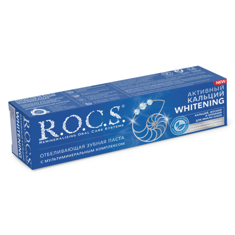 Отбеливающая зубная паста R.O.C.S. «Активный Кальций Отбеливающая», предназначена для насыщения зубной эмали необходимыми микроэлементами. Паста является богатым источником биологически доступного кальция, который способен встраиваться в естественную структуру эмали, возвращая ей блеск и здоровую белизну. Кроме этого, минеральный комплекс, заложенный в основу R.O.C.S. «Активный Кальций Отбеливающая», нормализует микрофлору полости рта, снижает образование зубного налета, повышает устойчивость зубов к кариесу и эффективно освежает дыхание.
