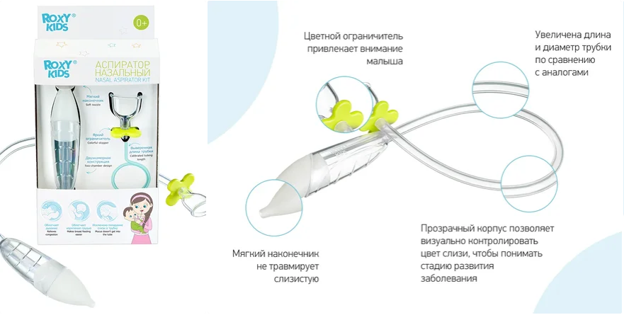 Аспиратор назальный с мягким наконечником – уникальная разработка инженеров ROXY-KIDS с запатентованной конструкцией. Этот прибор легко и быстро поможет избавить носик вашего ребенка от заложенности.