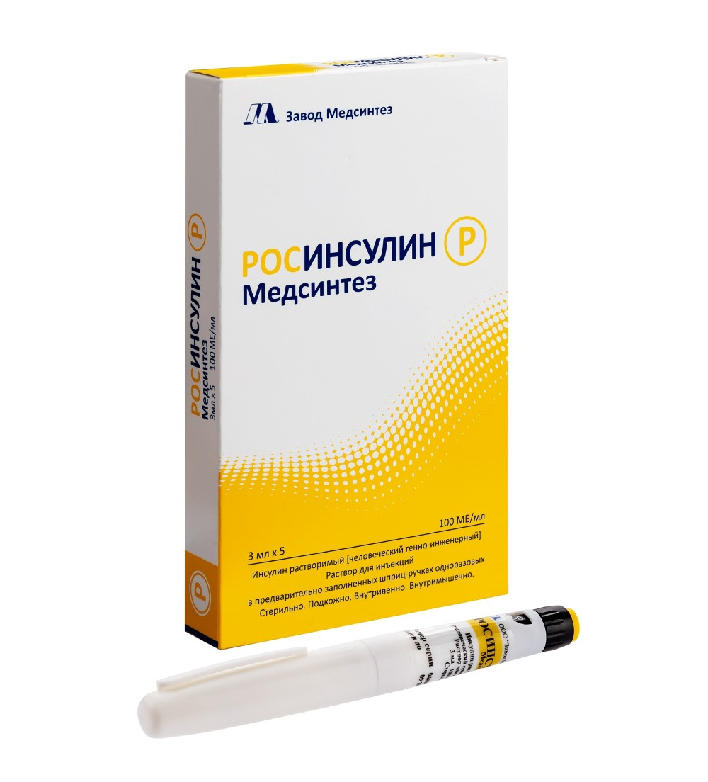Доза препарата РОСИНСУЛИН Р Медсинтез определяется врачом индивидуально в зависимости от пути введения инсулина, метаболических потребностей пациента, результатов мониторинга концентрации глюкозы в крови и целевых значений гликемического контроля. Коррекция дозы инсулина может потребоваться при изменении физической активности пациента, изменении режима питания (например, содержания макроэлементов или времени приема пищи), изменении функции почек или печени в период острого заболевания. Препарат РОСИНСУЛИН Р Медсинтез, вводимый путем подкожной инъекции, обычно применяется совместно с инсулином средней продолжительности или длительного действия.