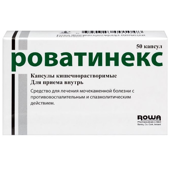 Роватинекс оказывает спазмолитическое действие, способствует прохождению камней по мочевыводящим путям, уменьшает боли при почечных и мочеточниковых коликах, усиливает почечный кровоток, улучшая функцию почек и повышая диурез.