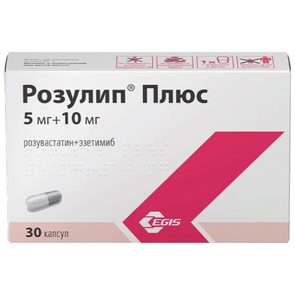 Капсулы Розулип® Плюс 5 мг/10 мг, 10 мг/10 мг и 20 мг/10 мг не пригодны для лечения пациентов, которым необходима доза розувастатина 40 мг.