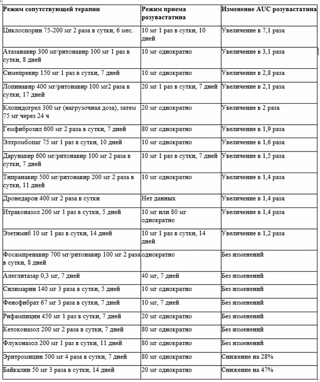 Влияние применения других препаратов на розувастатин