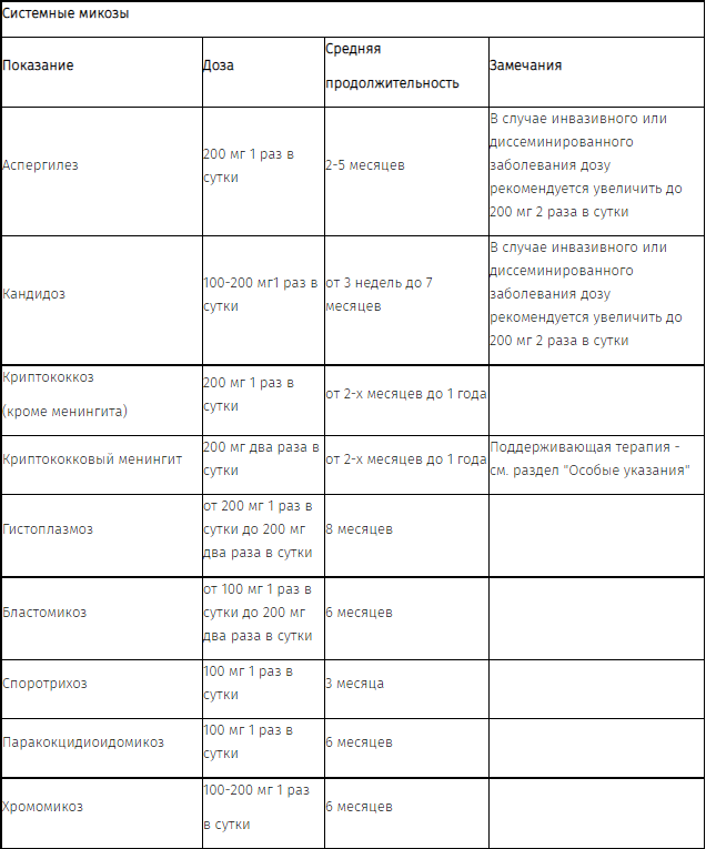 У пациентов с почечной недостаточностью, а также у некоторых пациентов с нарушенным иммунитетом (например, при СПИД, после трансплантации органов или в случае нейтропении) биодоступность итраконазола может снижаться.