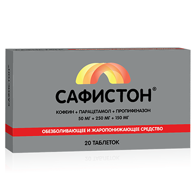 Сафистон представляет собой комбинированный препарат, действие которого определяется компонентами, входящими в его состав. Сочетание трех компонентов препарата приводит к взаимному усилению их фармакологического действия.