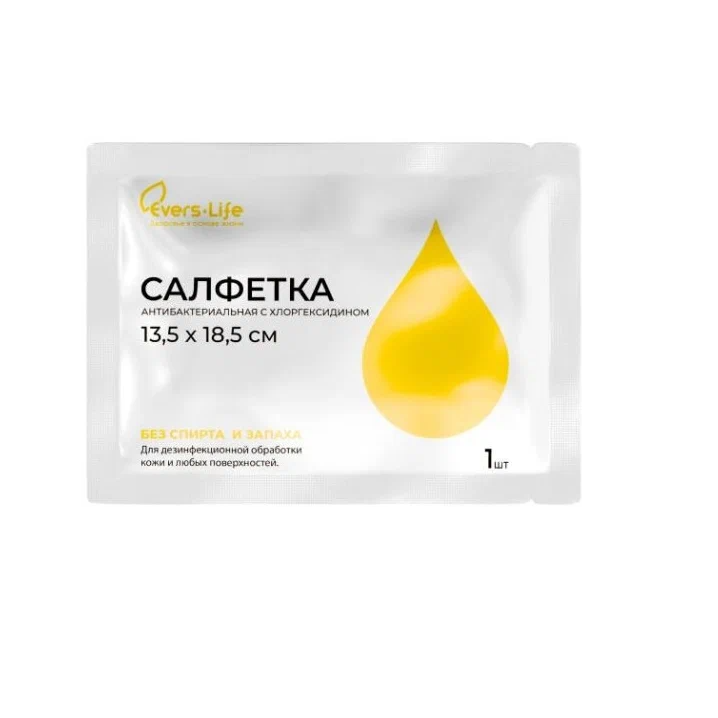 Evers Live 135 мм x 185 мм 1 шт салфетка антибактериальная с хлоргексидином