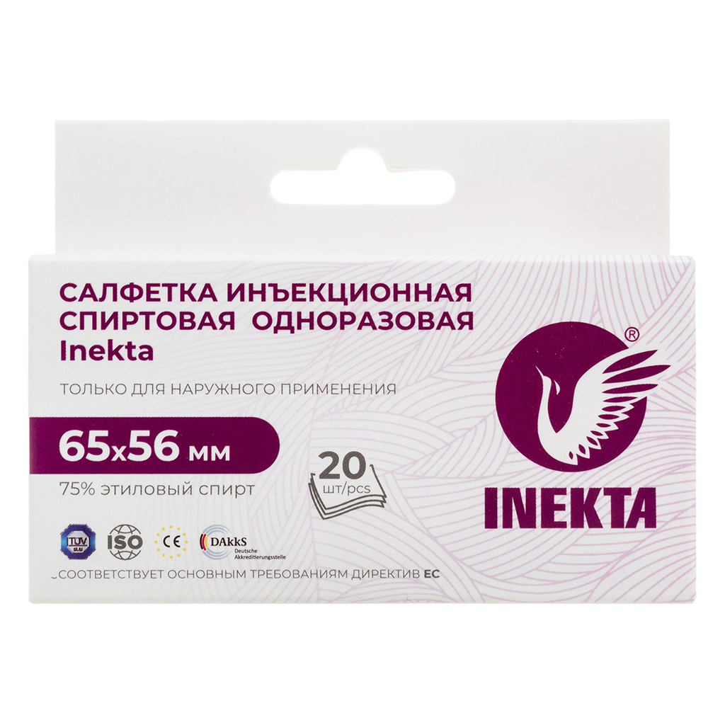 Салфетка инъекционная спиртовая одноразовая Inekta предназначена для дезинфекции кожи.