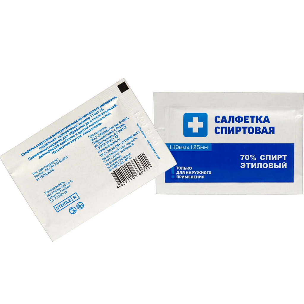 Салфетка спиртовая, антисептическая, стерильная «ООО Грани» из нетканого материала обеспечивает надежную обработку кожи и поверхностей.