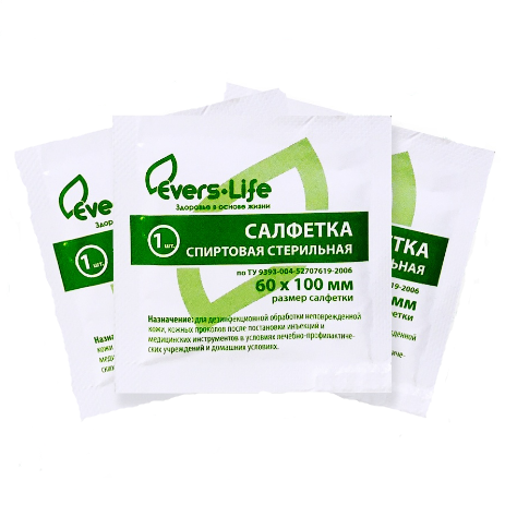 Салфетка обильно пропитана спиртом и стерильна. Применяется для дезинфекции кожи перед инъекциями, а также для обработки медицинских инструментов. Индивидуальная упаковка салфетки легко открывается руками. Упаковка изготовлена из плотного многослойного материала, что исключает высыхание салфетки и гарантирует ее стерильность в течение всего срока годности.