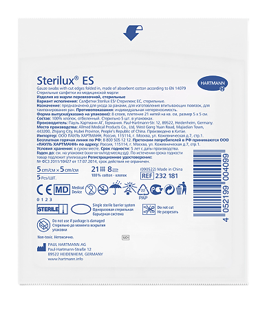 Инструкция по применению Sterilux ES 5 см x 5 см 5 шт салфетки стерильные 8-слойные 17-нитевые