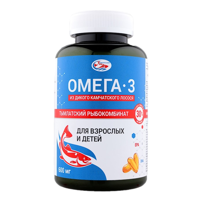 1 капсула содержит (по 600 мг) рыбного жира из дальневосточных лососевых видов рыб (в т.ч., дикого камчатского лосося) (ПНЖК омега-3 – не менее 30%), желатин, глицерин (агент влагоудерживающий), вода, смесь токоферолов (антиокислитель).
