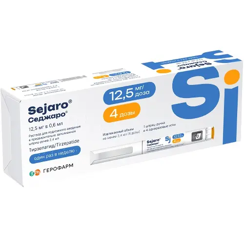 Седжаро® (2,5 мг/доза; 5 мг/доза; 7,5 мг/доза; 10 мг/доза; 12,5 мг/доза; 15 мг/доза) - раствор для подкожного введения в предварительно заполненной шприц-ручке.