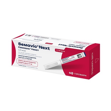 В отличие от нативного ГПП-1, продленный T1/2 семаглутида (около 1 недели) позволяет применять его п/к 1 раз в неделю. Связывание с альбумином является основным механизмом длительного действия семаглутида, что приводит к снижению выведения его почками и защищает от метаболического распада. Кроме того, семаглутид стабилен в отношении расщепления ферментом дипептидилпептидазой-4. Семаглутид снижает концентрацию глюкозы крови посредством глюкозозависимых стимуляции секреции инсулина и подавления секреции глюкагона. Таким образом, при повышении концентрации глюкозы крови происходит стимуляция секреции инсулина и подавление секреции глюкагона. Механизм снижения уровня гликемии включает также небольшую задержку опорожнения желудка в ранней постпрандиальной фазе. Во время гипогликемии семаглутид уменьшает секрецию инсулина и не снижает секрецию глюкагона.