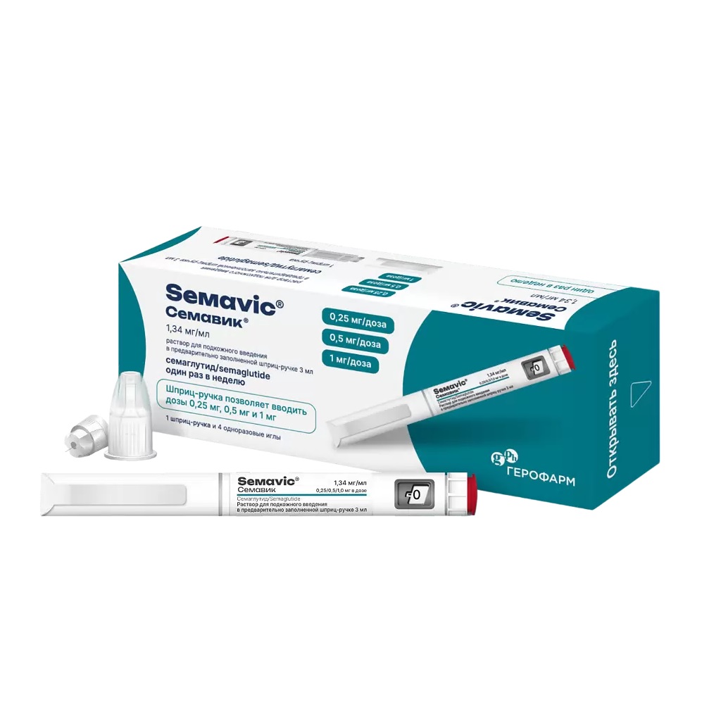 Начальная доза препарата Семавик® составляет 0,25 мг 1 раз в неделю. После 4 недель применения дозу следует увеличить до 0,5 мг 1 раз в неделю. Для дальнейшего улучшения гликемического контроля после как минимум 4 недель применения препарата в дозе 0,5 мг 1 раз в неделю, дозу можно увеличить до 1 мг 1 раз в неделю.