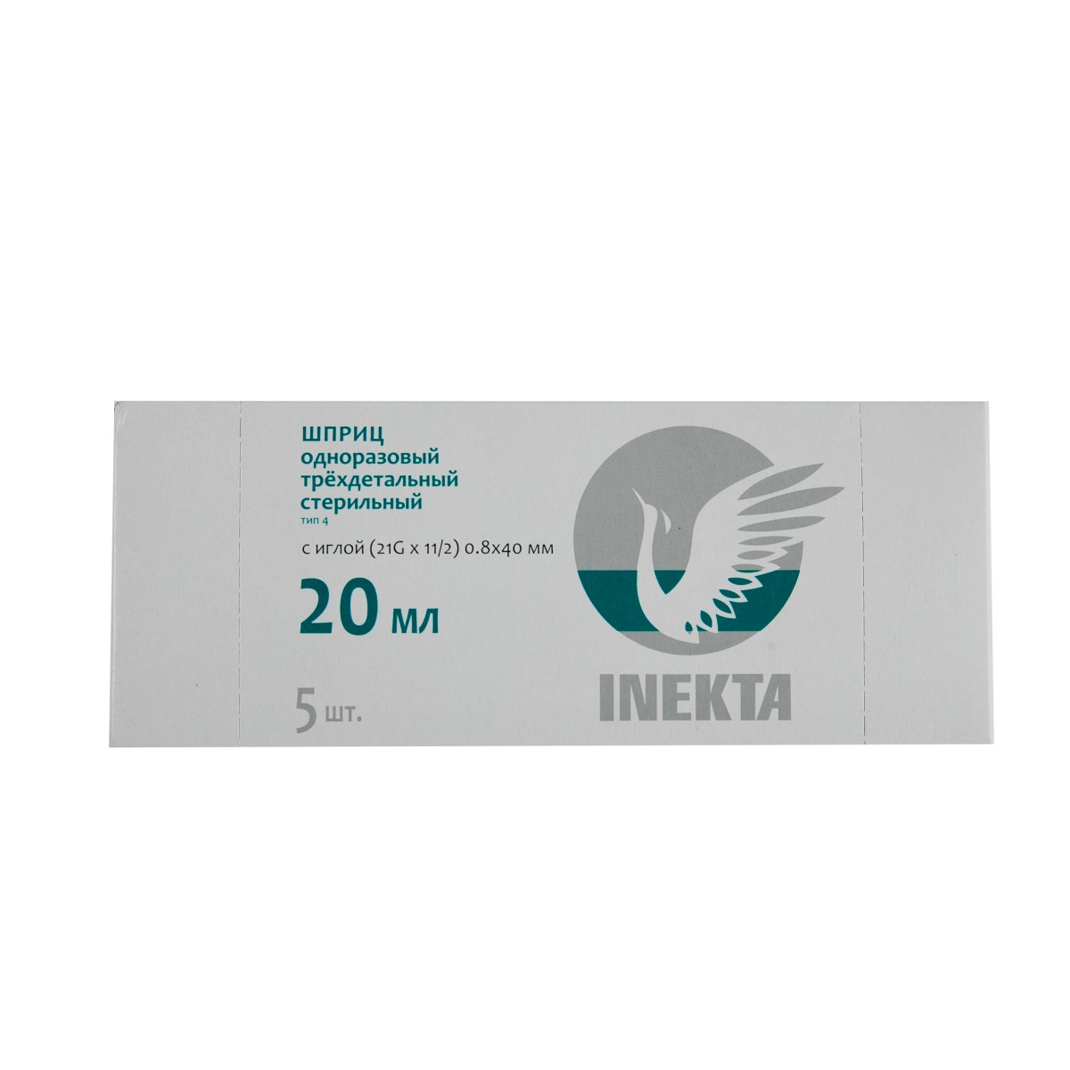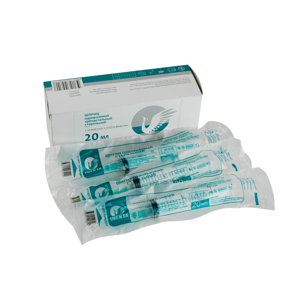 Шприц 20 мл одноразовый трехкомпонентный с иглой 0,8х40мм (21G*11/2) стерильный.