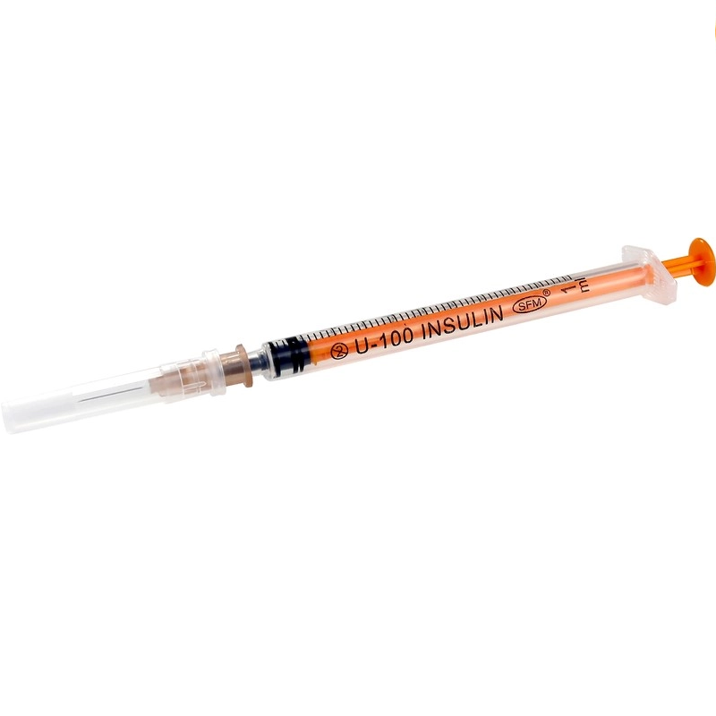 Инсулиновый шприц одноразовый 3-компонентный – это удобный и безопасный инструмент для инъекций инсулина. Шприц имеет мерную шкалу U-100, которая позволяет точно дозировать 100 единиц инсулина. Шаг шкалы - 2 единицы. Игла 26G (0,45 мм x 12 мм) (нержавеющая сталь) - съёмная, надетая на шприц. Цилиндр полностью прозрачен обеспечивает отличную визуализацию содержимого шприца. В упаковке находится 100 шприцев. Шприц изготовлен в соответствии со стандартами качества и безопасности, что обеспечивает его надежность и долговечность. Запрещается использовать шприцы и иглы повторно.