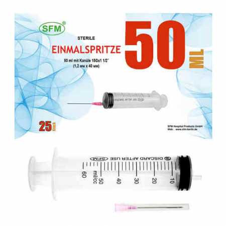 SFM 50 мл 25 шт шприц трехкомпонентный одноразовый стерильный с иглой 18G