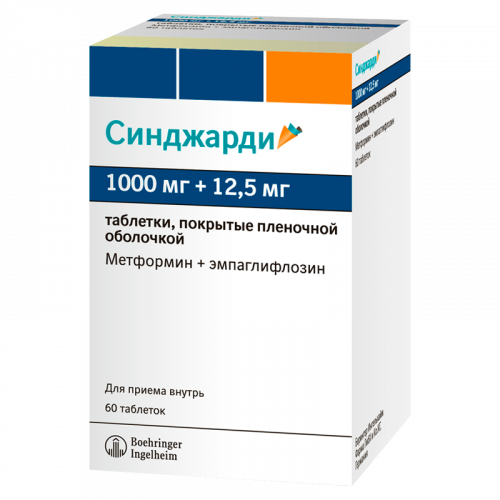 Максимальная рекомендуемая суточная доза препарата Синджарди составляет 25 мг эмпаглифлозина и 2000 мг метформина.