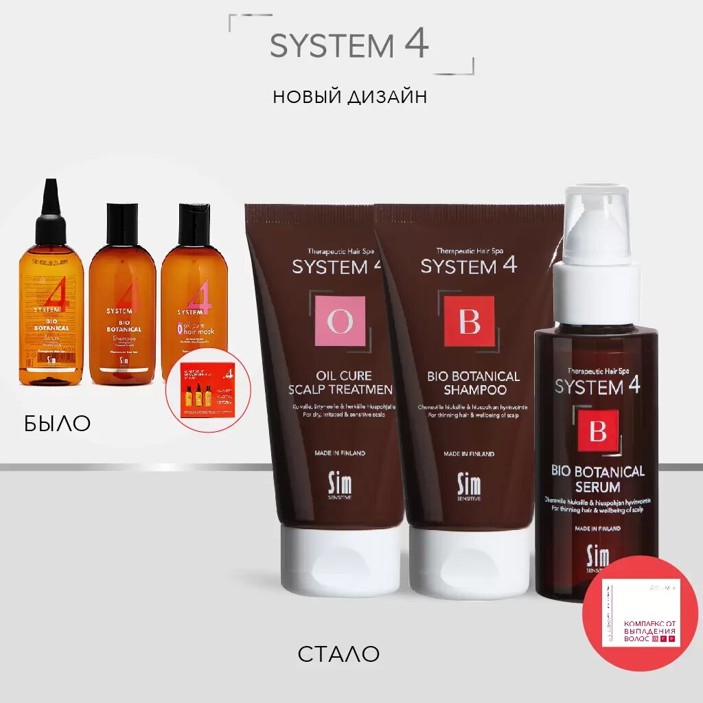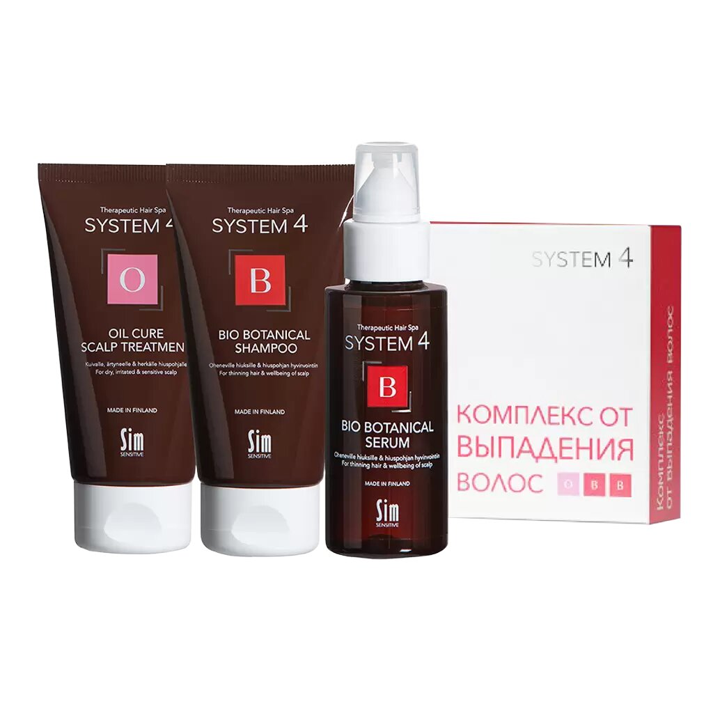 Набор средств от выпадения волос Система 4 состоит из 3-х продуктов, которые взаимодополняют друг друга и направлены на комплексное восстановление волосяного покрова, возвращение ему здорового вида. Продукция прошла тестирование, получила сертификаты качества, а также признание потребителей. В комплекс от выпадения волос входит очищающая маска для кожи головы, био-ботанический шампунь и сыворотка. Его рекомендуют использовать при выпадении волос, вызванное разными факторами. Также продукция отлично справляется с восстановлением кожного покрова при себорейном дерматите, позволяет избавиться от перхоти.