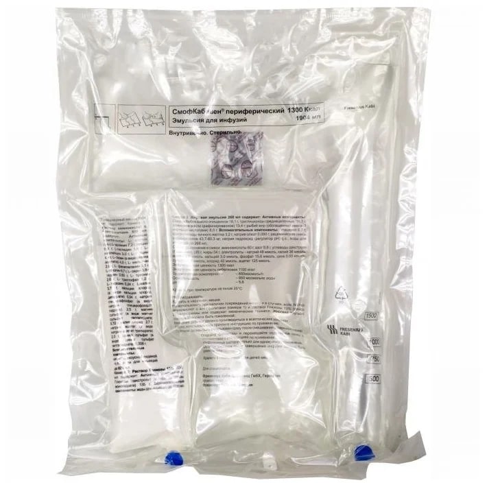 Для предотвращения риска, связанного со слишком высокой скоростью инфузии, рекомендуется использование волюметрического инфузионного насоса. Нарушения водно-электролитного баланса (например патологически высокие или низкие концентрации электролитов в плазме) должны быть корригированы до начала инфузии СМОФКабивен® периферический.