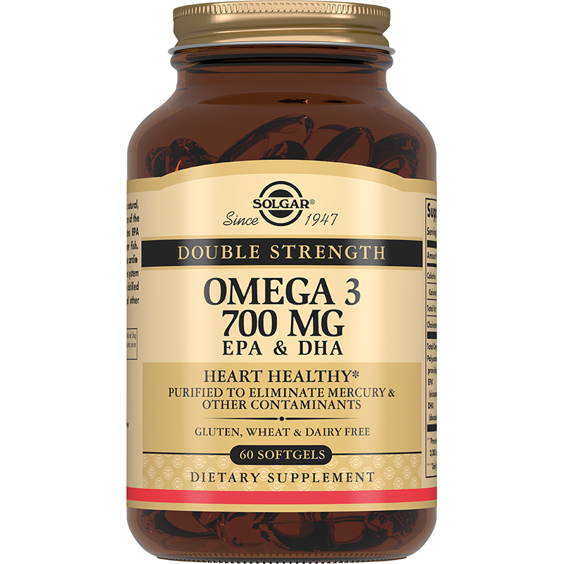 Двойная Омега -3 700 мг ЭПК и ДГК (Double Strength Omega-3 700 mg EPA & DHA Softgels) - это натуральный высококонцентрированный источник Омега-3 полиненасыщенных жирных кислот ЭПК (EPA) и ДГК (DHA) из холоднолюбивой рыбы.