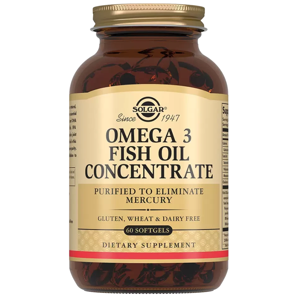 Капсулы «Концентрат рыбьего жира Омега-3» рекомендуются в качестве дополнительного источника полиненасыщенных жирных кислот омега-3 (эйкозапентаеновой и докозагексаеновой кислоты). Данная формула представляет собой натуральный концентрированный рыбий жир с оптимальным содержанием омега-3 полиненасыщенных жирных кислот, которые способствуют защите зрения, улучшению работы головного мозга, профилактике сердечно-сосудистых заболеваний, способствуют хорошему настроению.