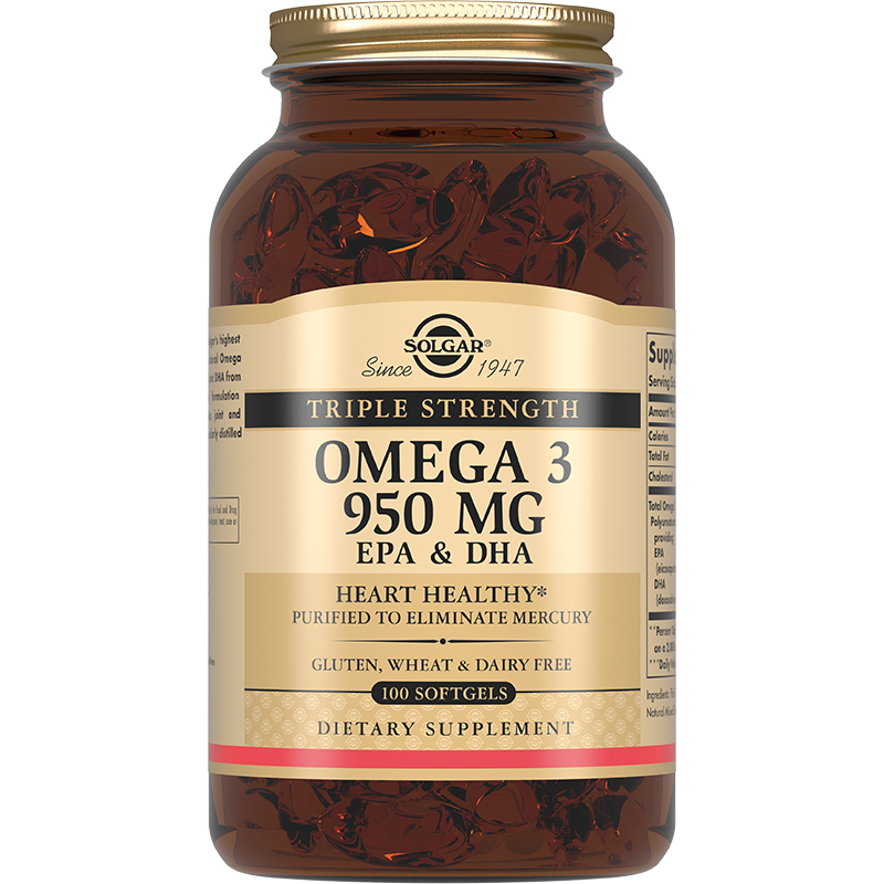 Действующими веществами добавки компании Солгар Тройная Омега 3 950 мг являются кислоты ЭПК и ДГК. Эти соединения из группы ПНЖК не синтезируются в организме, поэтому человек нуждается в их поступлении извне. Омега три выполняет ряд важных функций: