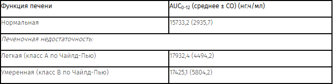 При тяжелой печеночной недостаточности (класс С по Чайлд-Пью) данные, позволяющие назначить рекомендованную дозу, не получены.
