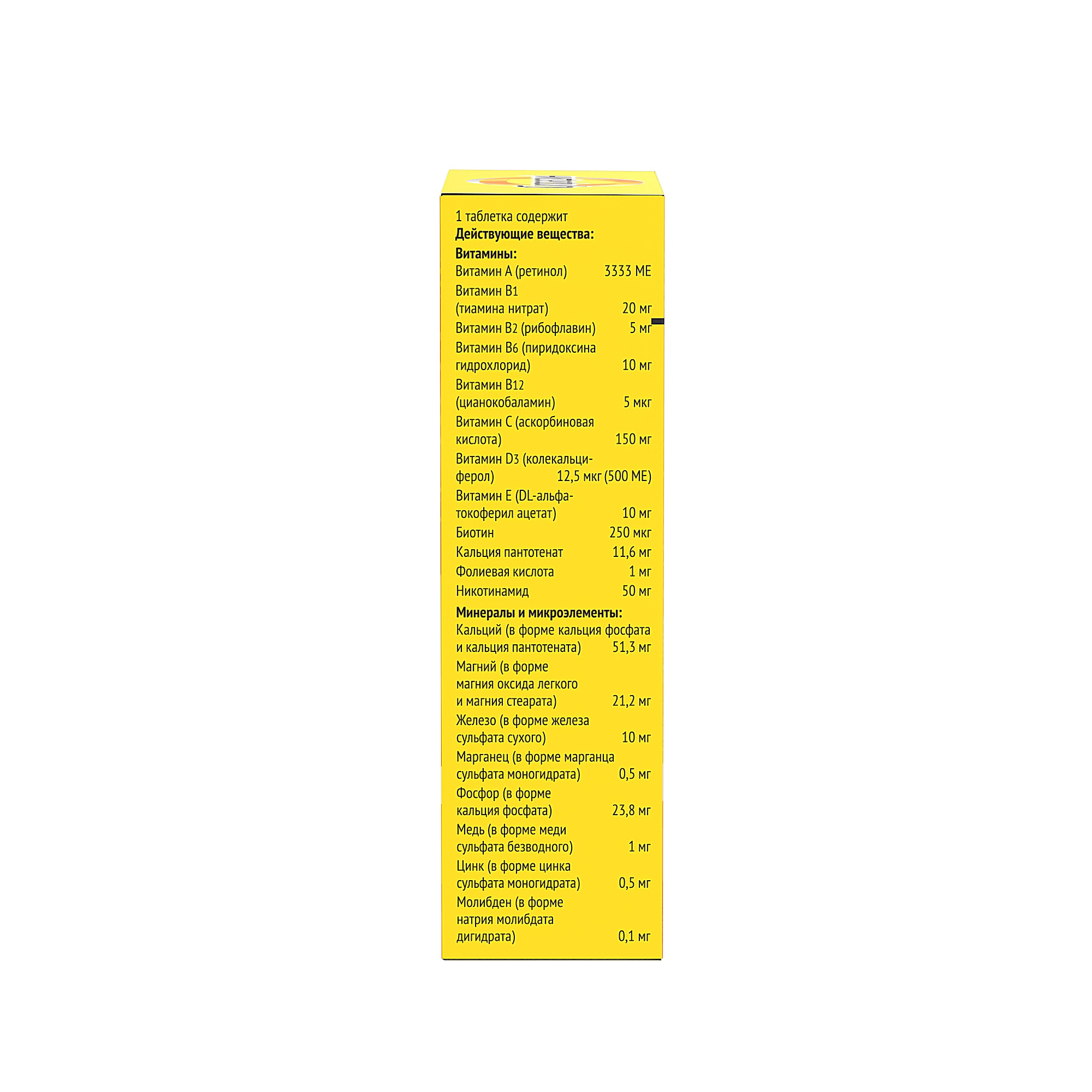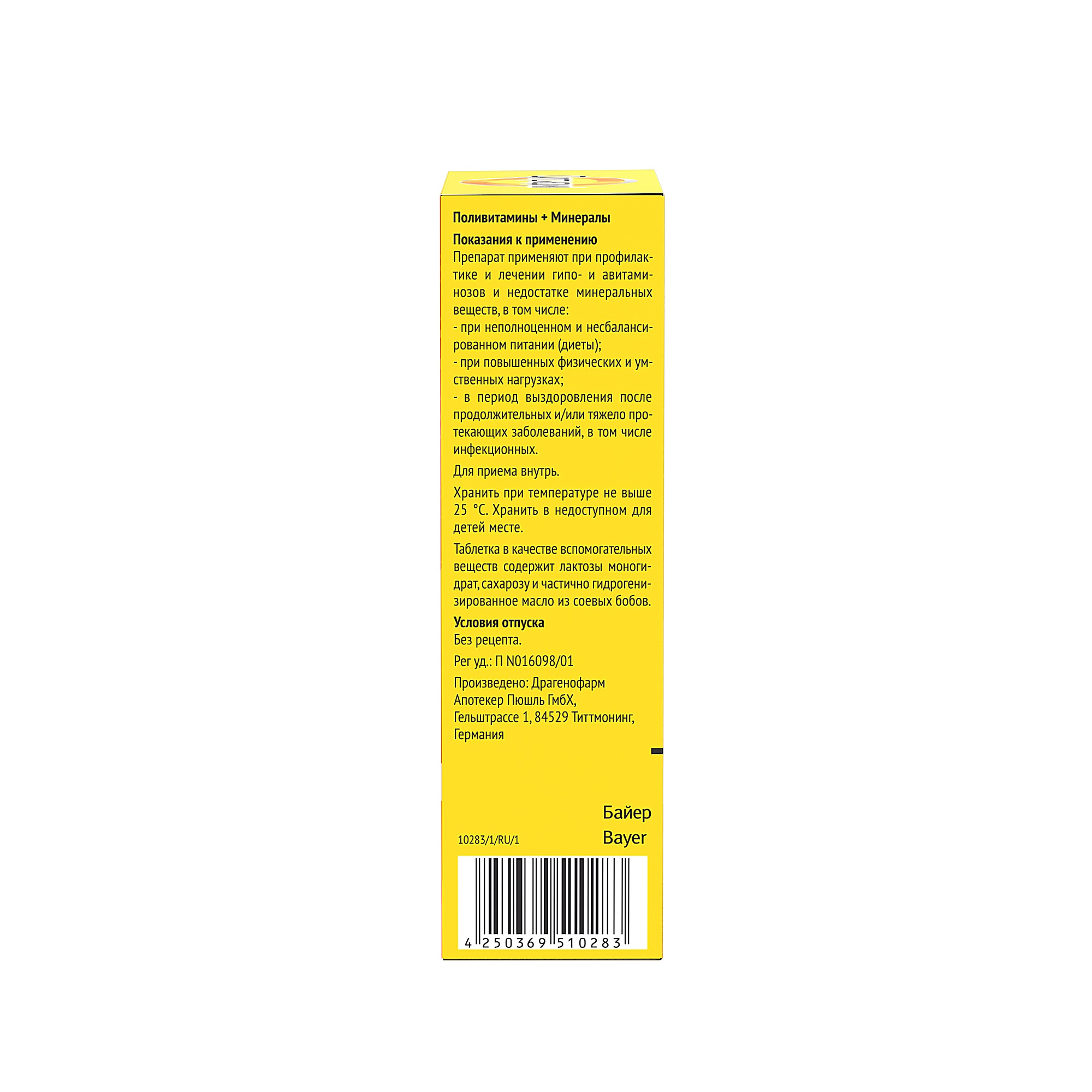 Не следует превышать рекомендуемую дозу препарата, поскольку очень высокие дозы некоторых ингредиентов препарата, в частности витамина А, витамина D, железа и меди могут оказывать неблагоприятное воздействие на организм человека. Так, чрезмерный прием витамина А в короткие сроки в дозе более 500 000 МЕ приводит к острому гипервитаминозу, выражающемуся в недомогании, боли в животе, головной боли с тошнотой и рвотой, головокружении. Длительный прием витамина А в дозе более 100 000 МЕ/сут приводит к хроническому гипервитаминозу, проявляющемуся костной и суставной болью, сухостью кожи и ломкостью ногтей, выпадением волос и снижением массы тела. Избыточный прием витамина D в дозе 2000 МЕ в течение нескольких недель или месяцев также приводит к гипервитаминозу, симптомами которого являются тошнота, рвота, жажда, нарушение стула, обезвоживание.
