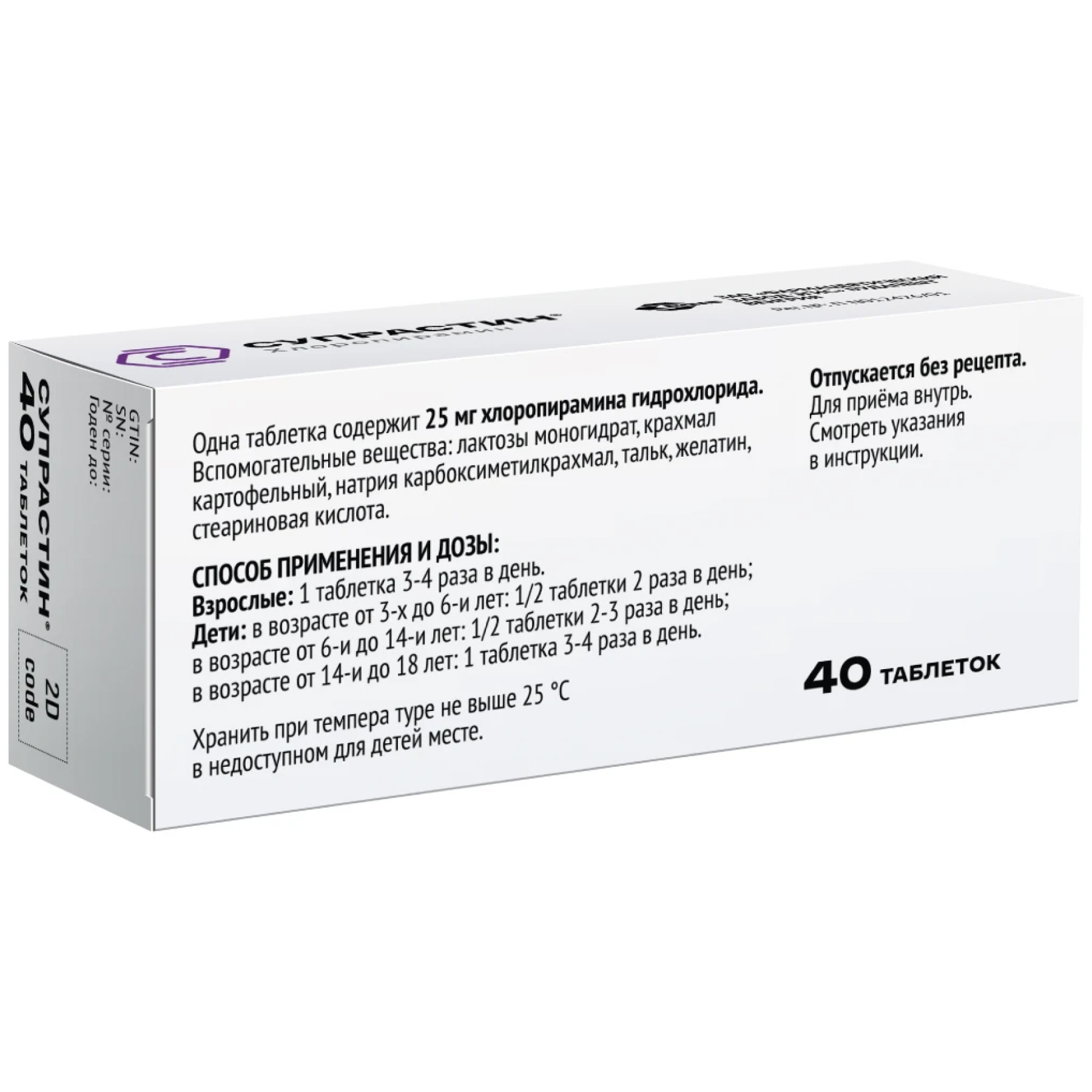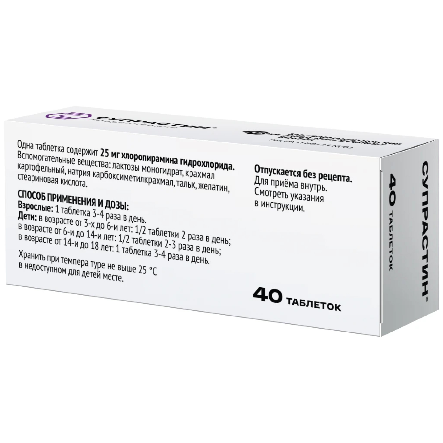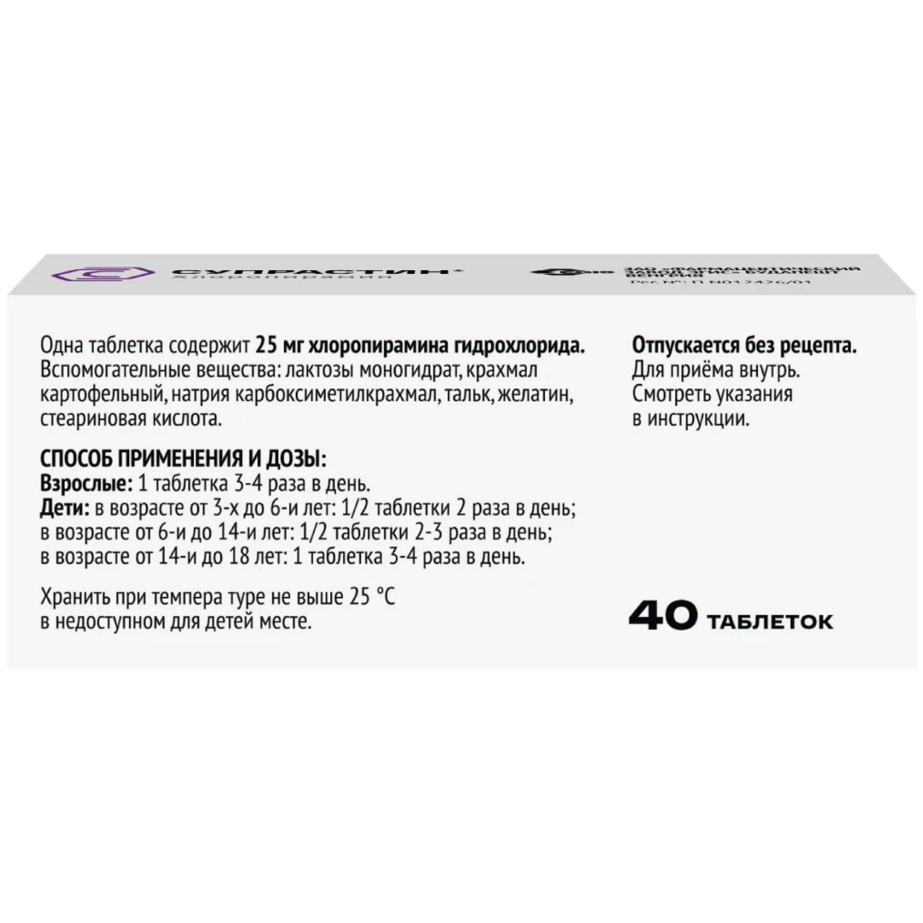 Каждая таблетка содержит 116 мг лактозы моногидрата. Супрастин® противопоказан пациентам с дефицитом лактазы, непереносимостью лактозы, глюкозо/галактозной мальабсорбцией.