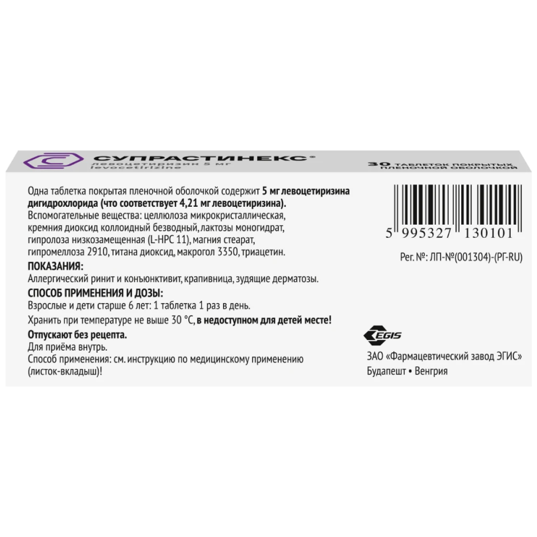 Фармакокинетические параметры левоцетиризина изменяются линейно и практически не отличаются от фармакокинетики цитиризина.