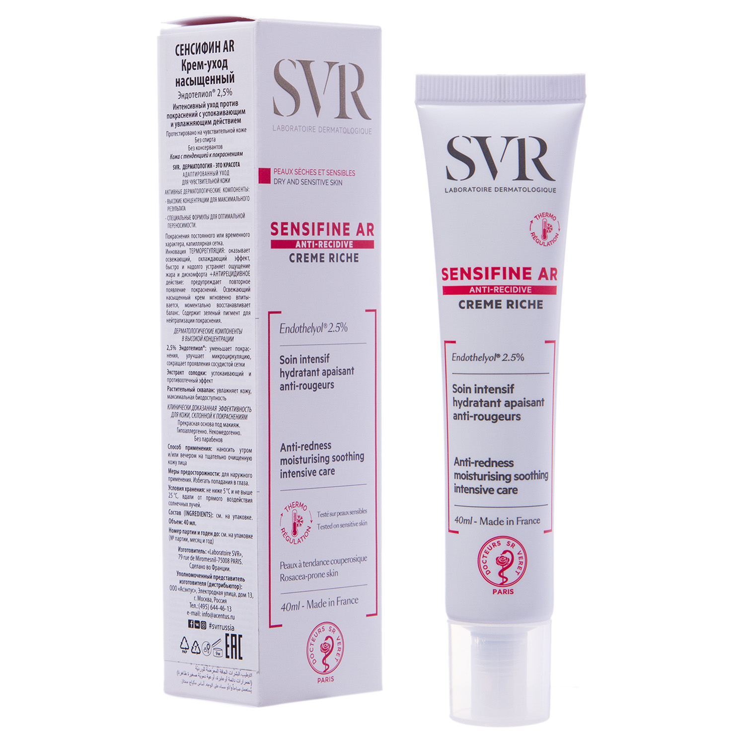 Насыщенный питательный крем для чувствительной кожи. Доказанная эффективность на чувствительной и проблемной коже, а также на коже, склонной к покраснениям и куперозу. Благодаря уникальной формуле Сенсифин AR крем мгновенно освежает и обеспечивает эффект прохлады, возвращая чувство комфорта.