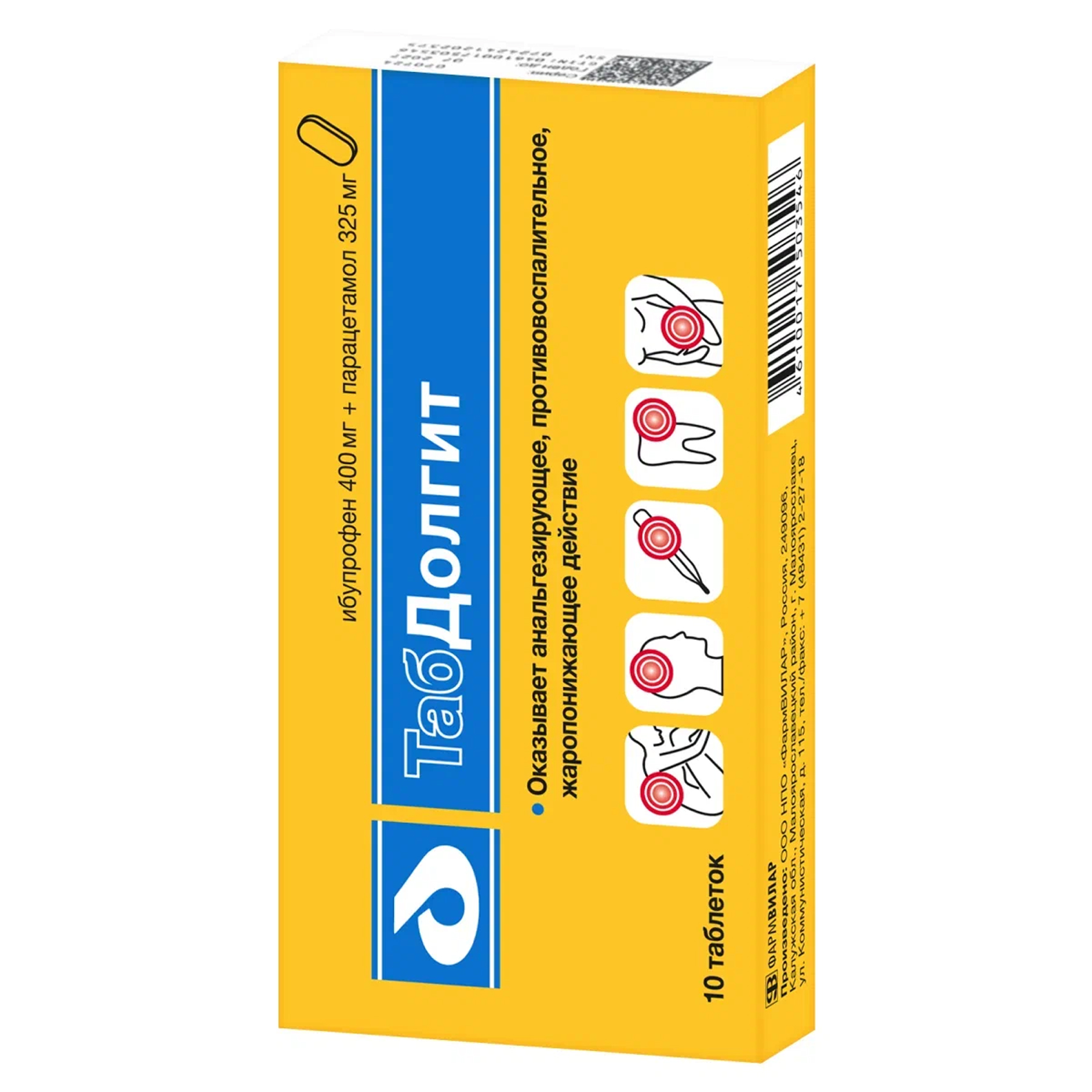 ТабДолгит 400 мг + 325 мг 10 шт таблетки покрытые пленочной оболочкой