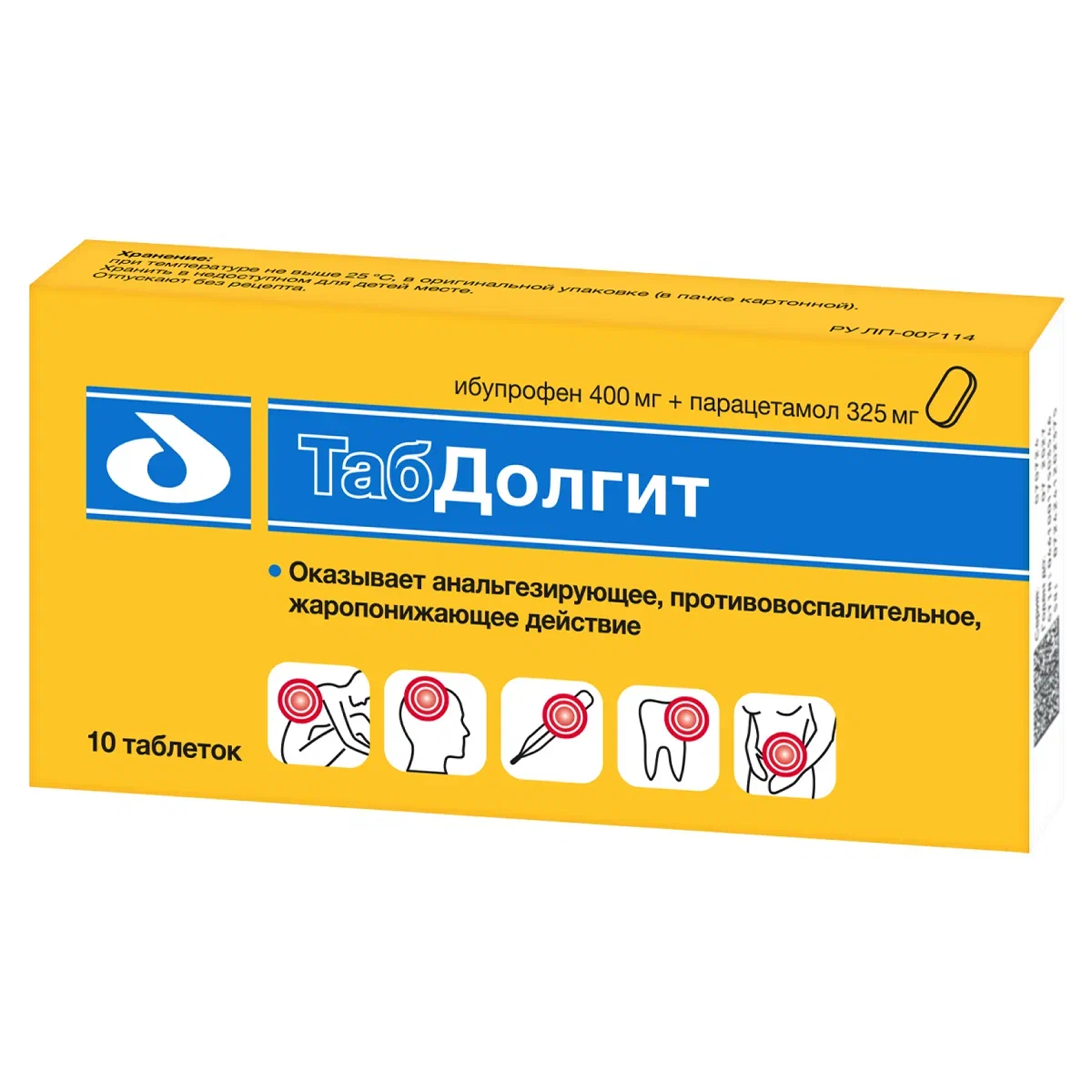 Инструкция по применению ТабДолгит 400 мг + 325 мг 10 шт таблетки покрытые пленочной оболочкой