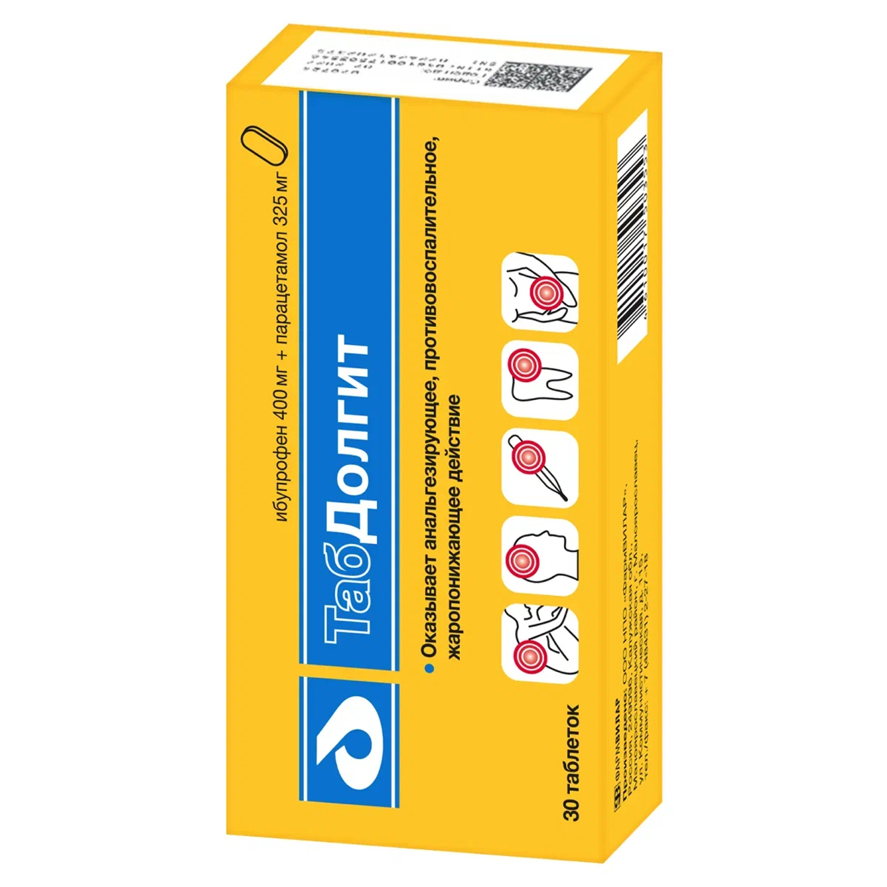 ТабДолгит 400 мг + 325 мг 30 шт таблетки покрытые пленочной оболочкой