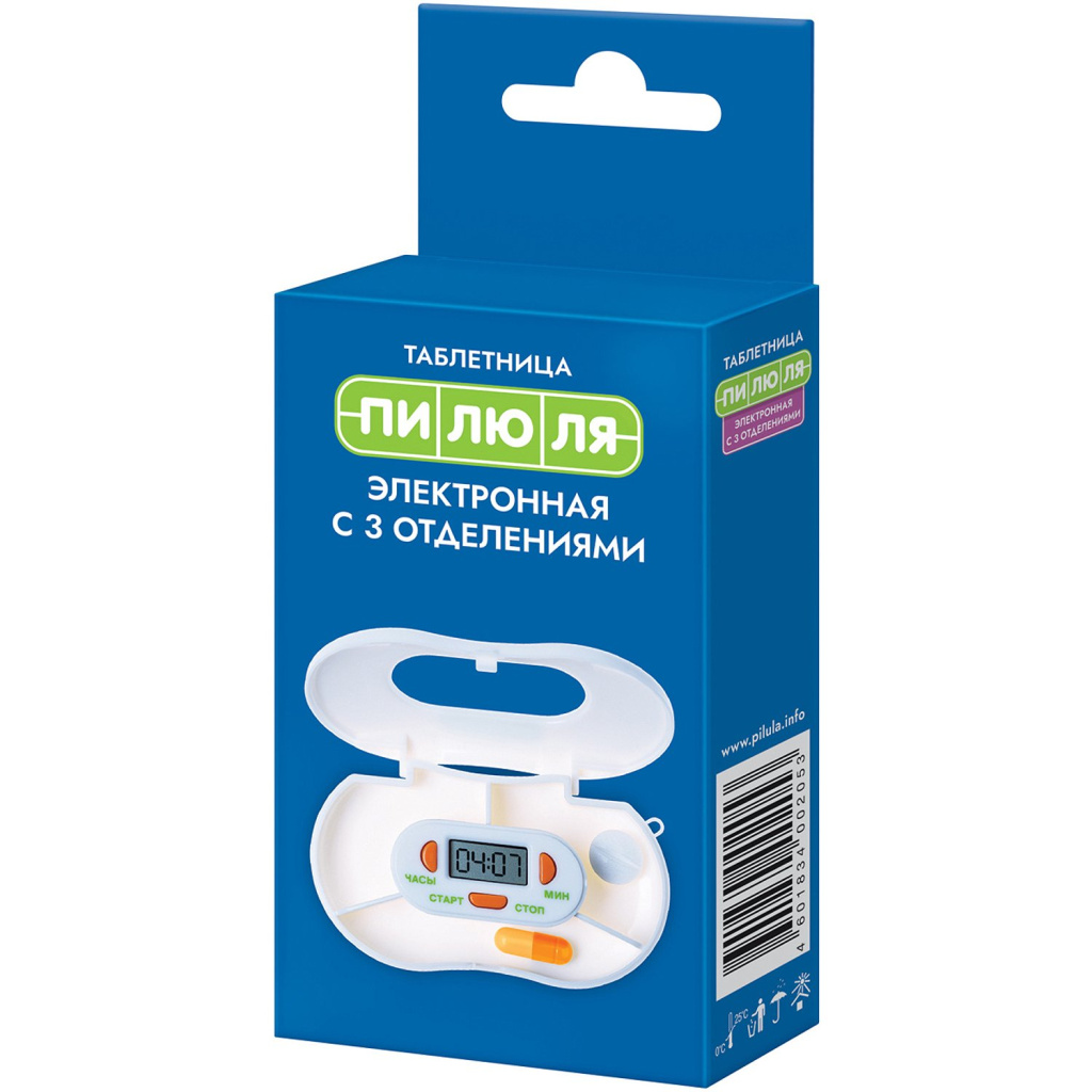 Встроенный таймер поможет вовремя принять лекарство: нужно установить время, которое осталось ДО приема лекарственных средств или витаминов, по истечении которого звуковой сигнал напомнит о том, что пора принимать лекарство. Таблетница содержит 3 отделения для различных видов лекарственных средств.