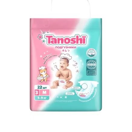 TANOSHI ПОДГУЗНИКИ ДЛЯ ДЕТЕЙ РАЗМЕР M 5-9КГ - Универсальные: для мальчиков, для девочек.