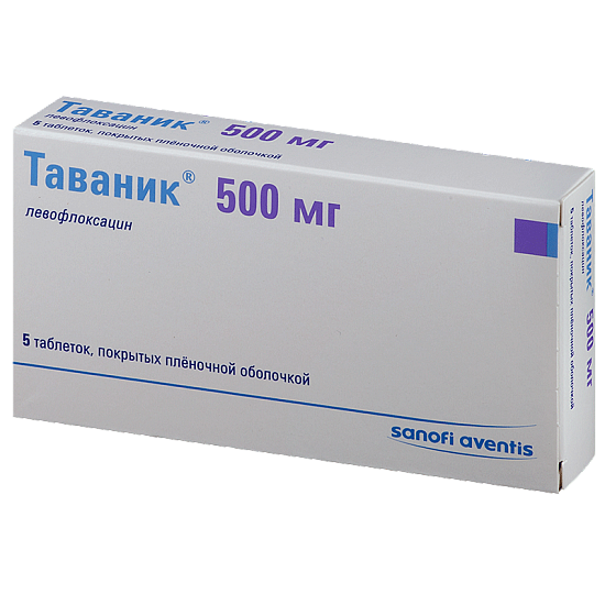 На 10-й день приема внутрь препарата Таваник® в дозе 500 мг 1 раз/сут Cmax левофлоксацина в плазме составляла 5.7±1.4 мкг/мл, а Cmin левофлоксацина (концентрация перед приемом очередной дозы) в плазме составляла 0.5±0.2 мкг/мл.