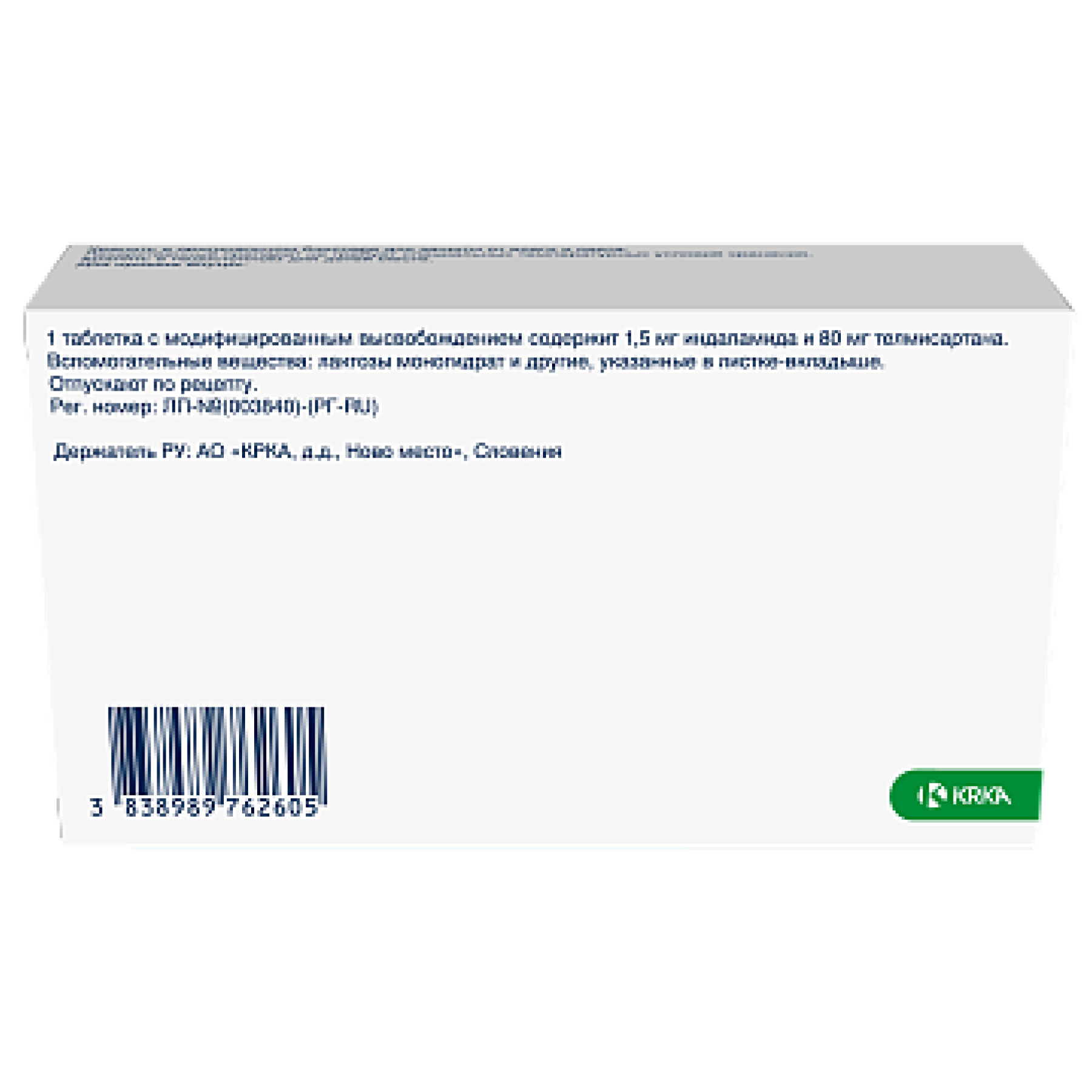 Каждая таблетка содержит 1,5мг индапамида и 80мг телмисартана.