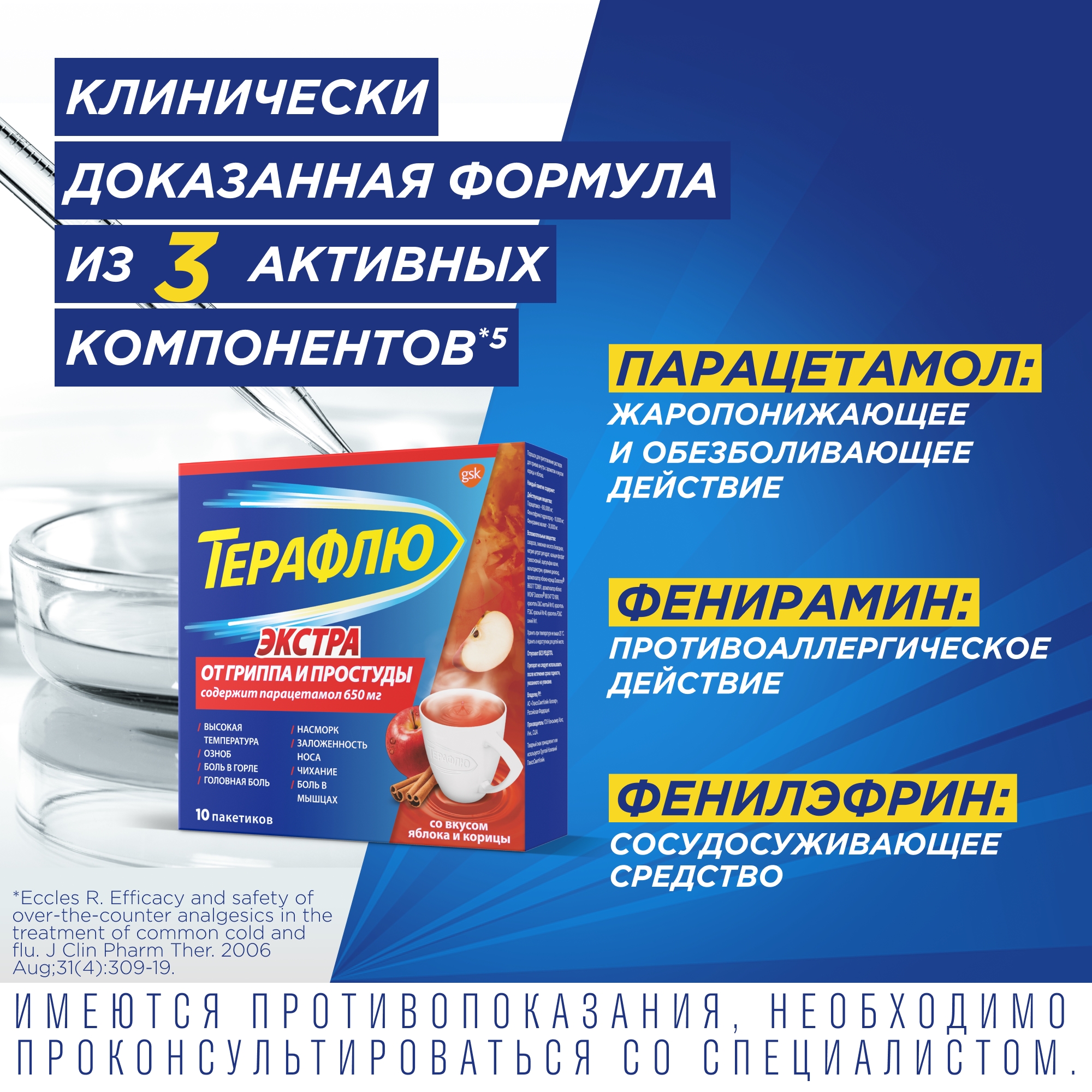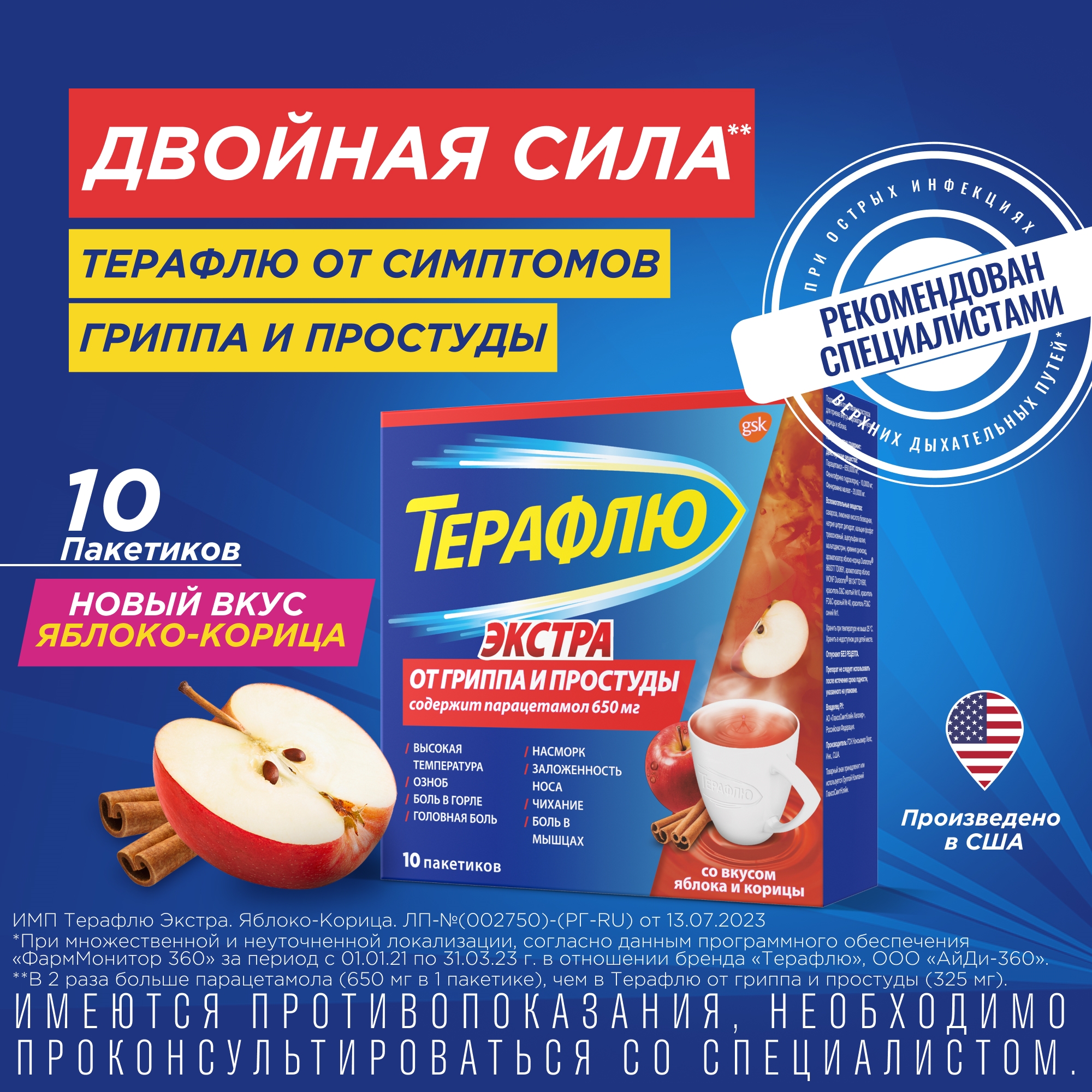 ТераФлю® от гриппа и простуды Экстра противопоказан пациентам, которые принимают или принимали ингибиторы МАО в течение последних двух недель.